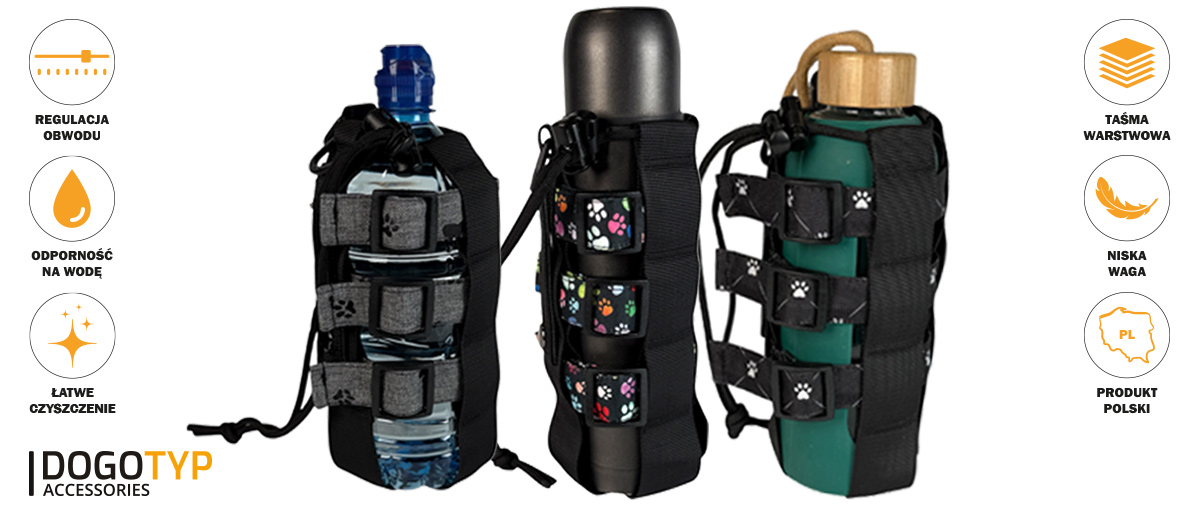Etui na bidon i butelkę Dogotyp Accessories to praktyczne i stylowe rozwiązanie dla osób aktywnych, które chcą mieć wodę zawsze pod ręką – zarówno podczas codziennych spacerów z psem, jak i podczas intensywnego treningu.