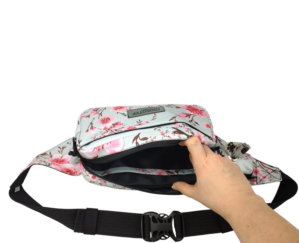Nerka Treningowa "Bluekwiaty" jest produktem przeznaczonym do przechowywania przysmaków podczas wyjść z pupilem. Zawiera w sobie przestrzeń na telefon, dokumenty lub pieniądze. Osobna kieszonka może służyć do przechowywania kluczyków np. do samochodu, podczas spacerów. Nerka treningowa została opracowana w taki sposób, aby umożliwić łatwe i szybkie skorzystanie z woreczków porządkowych.