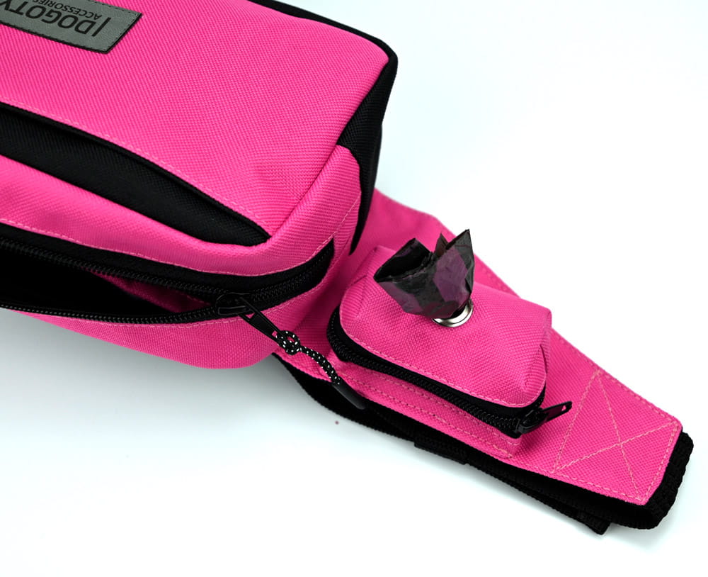 Nerka Treningowa "Różowy Czarny" jest produktem przeznaczonym do przechowywania przysmaków podczas wyjść z pupilem. Zawiera w sobie przestrzeń na telefon, dokumenty lub pieniądze. Osobna kieszonka może służyć do przechowywania kluczyków np. do samochodu, podczas spacerów. Nerka treningowa została opracowana w taki sposób, aby umożliwić łatwe i szybkie skorzystanie z woreczków porządkowych. Nerka w kolorze czarnym w białe łapki.