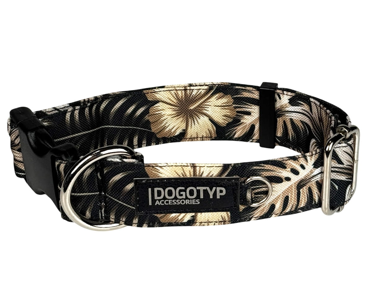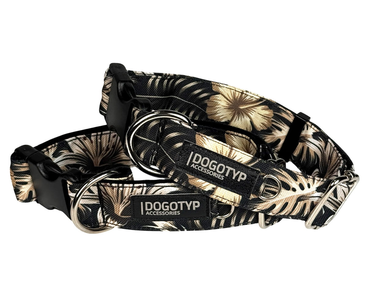 Optymalna szerokość obroży jest uzależniona od preferencji przewodnika oraz wielkości i temperamentu czworonoga. Szerokość taśmy obroży 2cm jest standardową szerokością, możliwe jest również wykonanie obroży o szerokości 2,5cm oraz 3cm. Zapięcie z mrozoodpornego tworzywa oraz metalowe okucie dopasowane są do szerokości obroży. Standardowe "srebrne" okucie jest praktyczne w utrzymaniu oraz umiarkowanie znosi proces starzenia się. Okucie w kolorze "czarnym" jest najmniej wytrzymałe na przetarcia z upływem czasu. Okucie w kolorze "złotym" jest najbardziej odporne na słoną wodę oraz najlepiej znosi proces starzenia się.