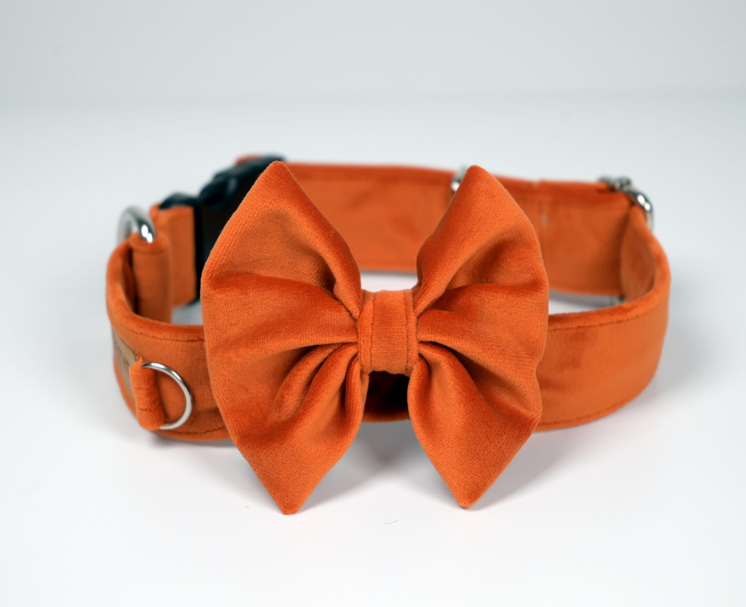 Obroża "Welurowa Dynia" to produkt, który jest niezbędnym elementem "psiej garderoby". Solidna i wygodna obroża stanowi o bezpieczeństwie czworonoga oraz przewodnika podczas wspólnych wypraw. Między innymi stanowi podstawę do przypięcia smyczy, zatem towarzyszy nam np. na spacerze, podczas wizyty u znajomych, w czasie wspólnych treningów, przy wizycie u weterynarza, czy uczestnictwu w psich sportach.