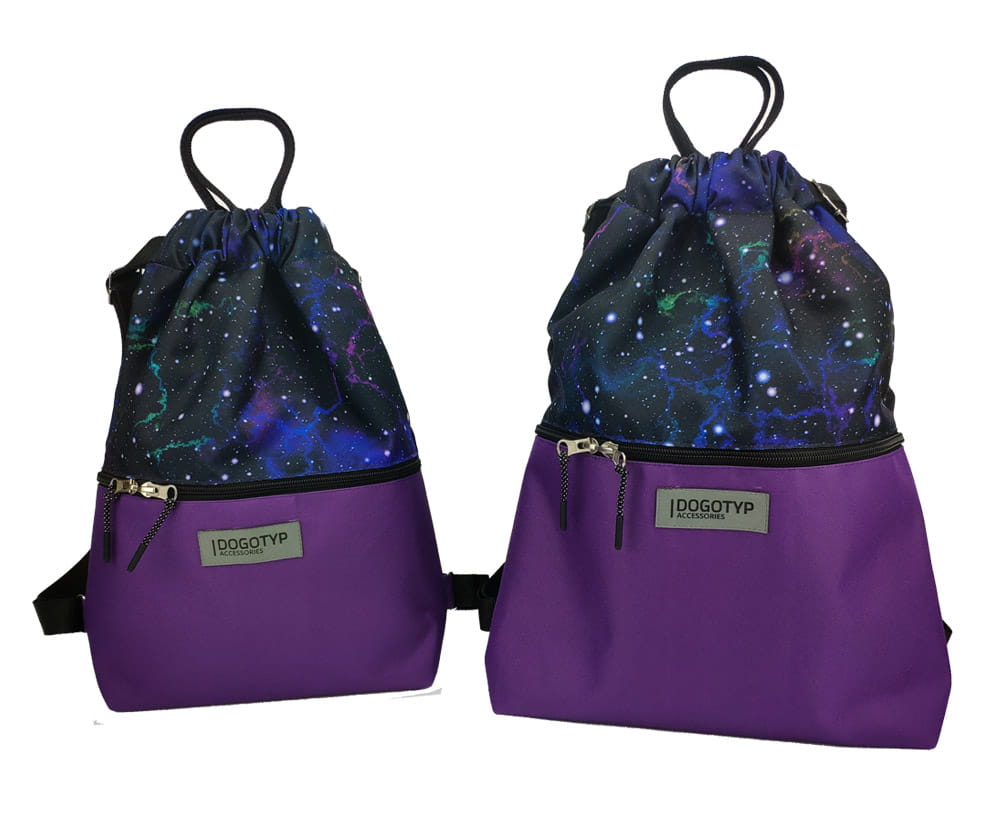 Plecak "Galaxy Fiolet" to nie tylko praktyczne rozwiązanie dla podróżujących, spacerujących czy trenujących z psem - to także elegancki dodatek do Twojej codziennej garderoby. Pomieści dysk frisbee, mobilną miskę, butelkę z wodą, dodatkowe przysmaki, przedmioty do aportu oraz inne niezbędne gadżety. Bez względu na to, gdzie się wybierasz, do plecaka spakujesz wszystko czego potrzebujesz..