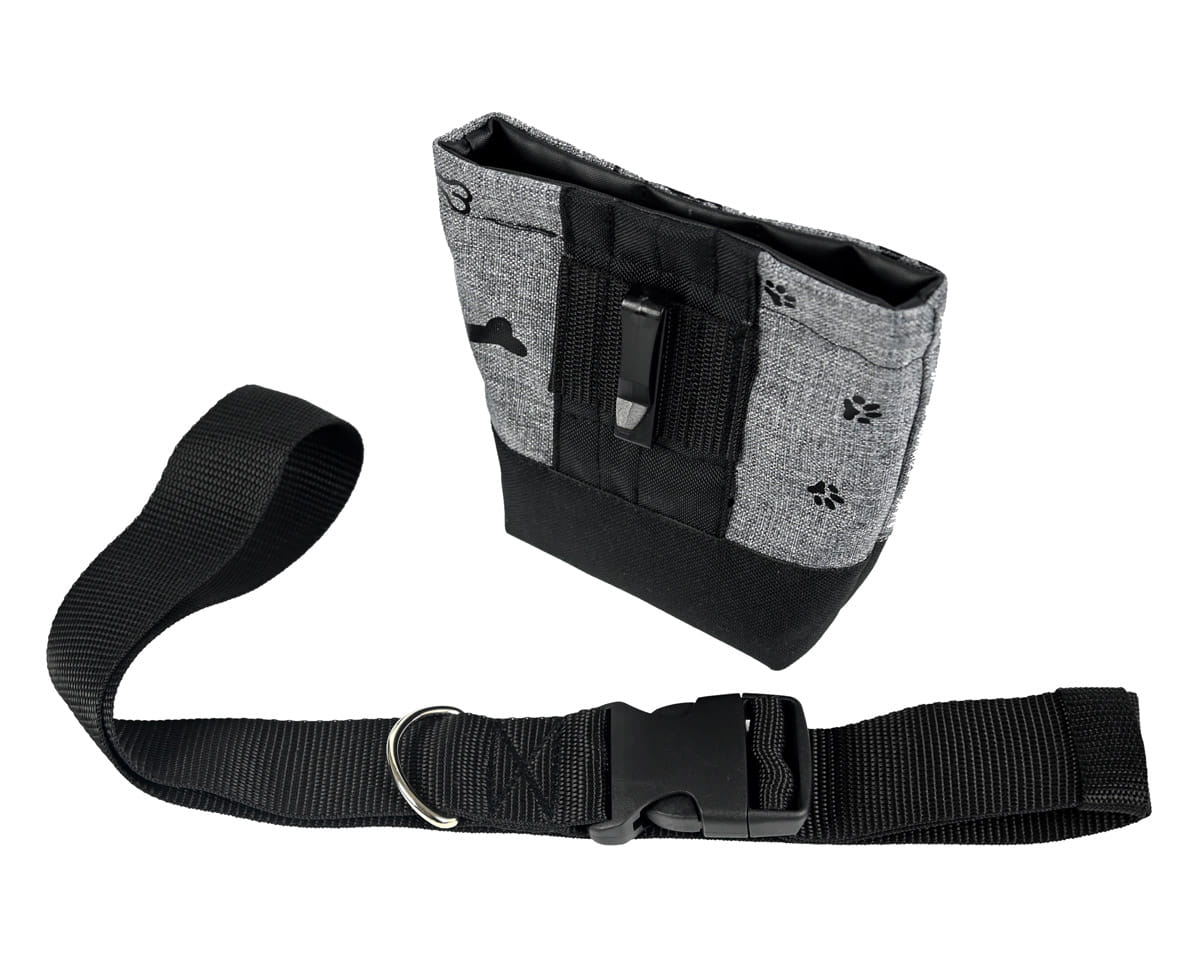 Saszetka wodoodporna, przeznaczona do noszenia w pasie. Posiada uniwersalny "haczyk", który umożliwia przyczepienie saszetki np. do spodni. Możliwe jest również przypięcie saszetki do własnego paska. Najlepiej sprawdza się jednak z dedykowanym pasem, dzięki któremu można założyć saszetkę np. zimą na kurtkę. Pas posiada zapięcie na smycz. Podczas aktywności saszetka nie pozwala wydostać się przysmakom na zewnątrz. Zoptymalizowana wielkość pozwala na doskonałe dopasowanie do ciała. Saszetka treningowa usprawnia spacery z psem, sesje treningowe, aktywności sportowe, uczestnictwo w psich zawodach.