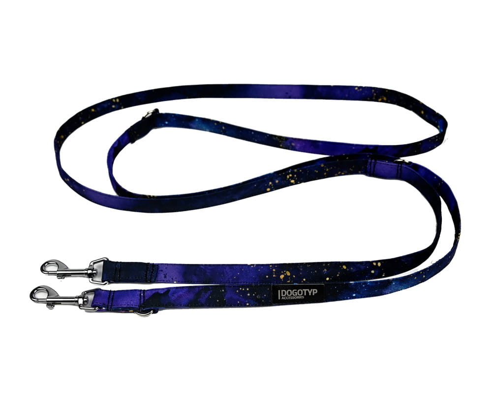 Smycz Przepinana Materiałowa "Galaxy" to niezastąpiony element "psiej garderoby", który umożliwia bezpieczne i komfortowe spędzanie czasu na świeżym powietrzu zarówno Tobie, jak i Twojemu pupilowi. Niezależnie od tego, czy planujesz trening, spacer, czy wizytę u weterynarza, smycz zapewni Ci spokój i pewność podczas każdej przygody.
